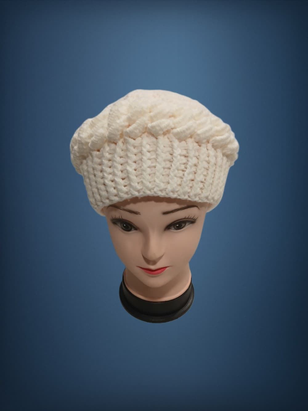 Precio, información, características e imágenes de Gorro ondas blanco hecho a mano a ganchillo pertenece a la categoría Gorros y cuellos (50).