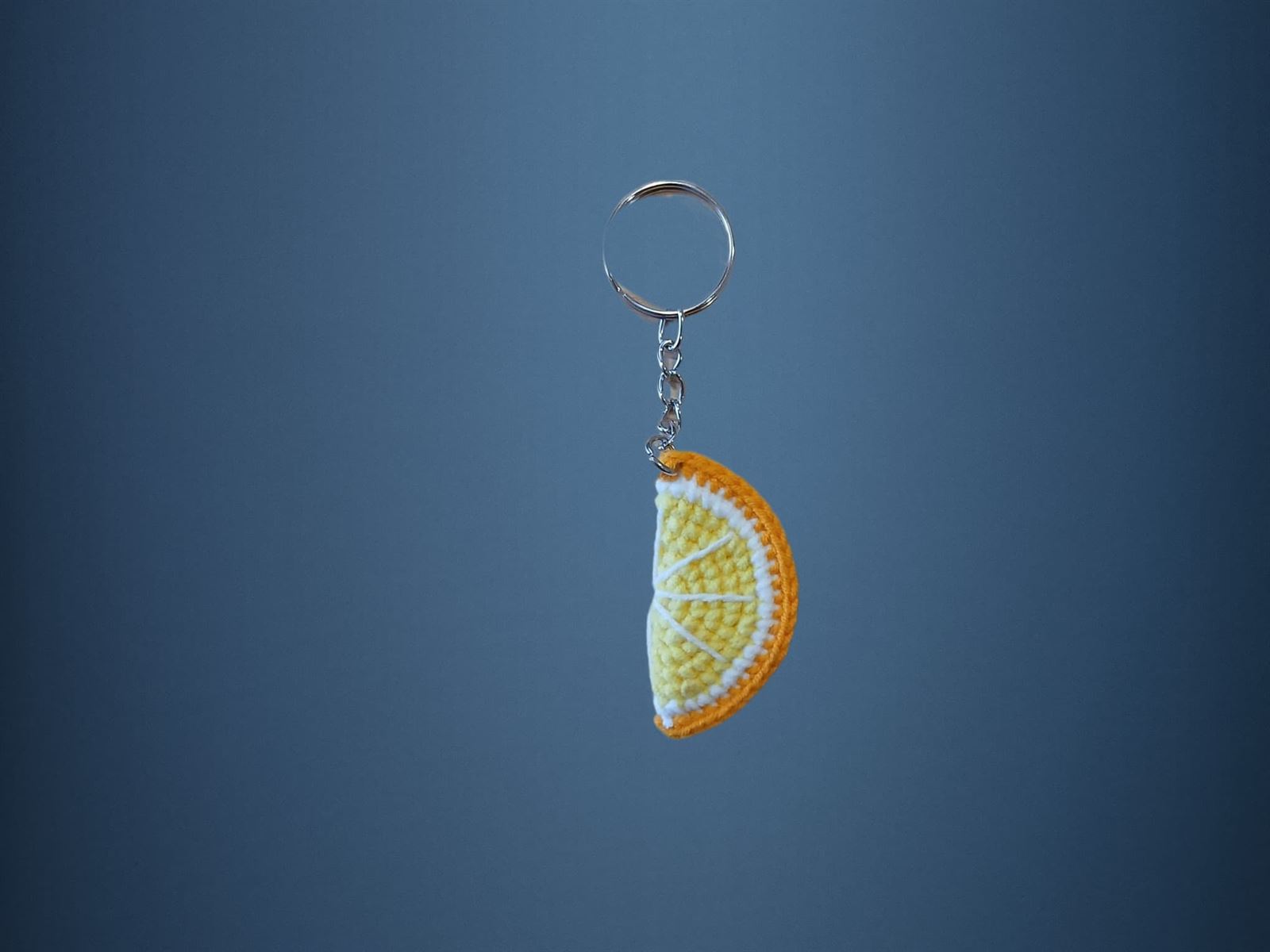 Precio, información, características e imágenes de Llavero media naranja amigurumi hecho a mano a ganchillo. pertenece a la categoría Llaveros (30).