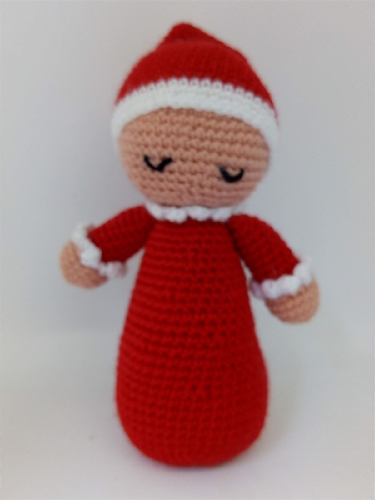 Peluche dormilón rojo navideño hecho a mano a ganchillo (amigurumi).